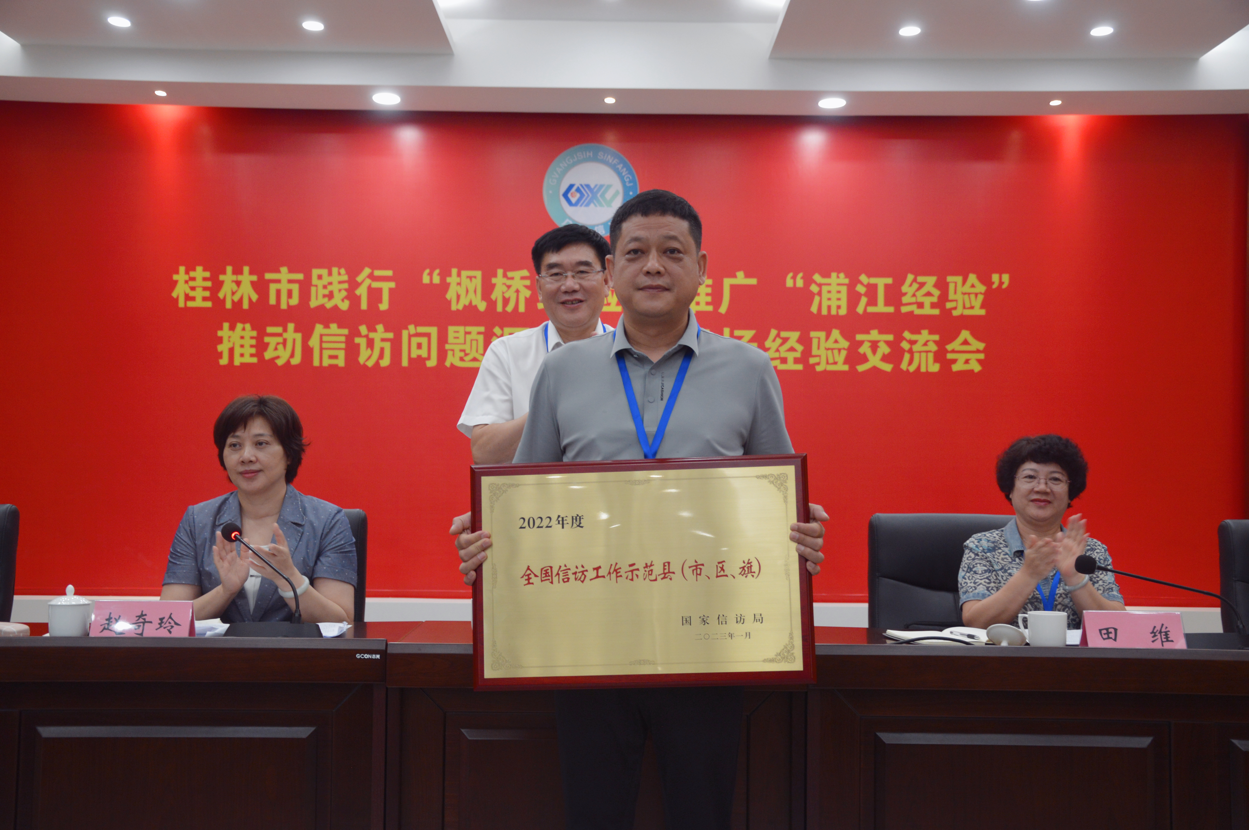 会上,为荣获2022年全国“信访工作示范县(市、区)”和全区“人民满意窗口”的单位进行了授牌。